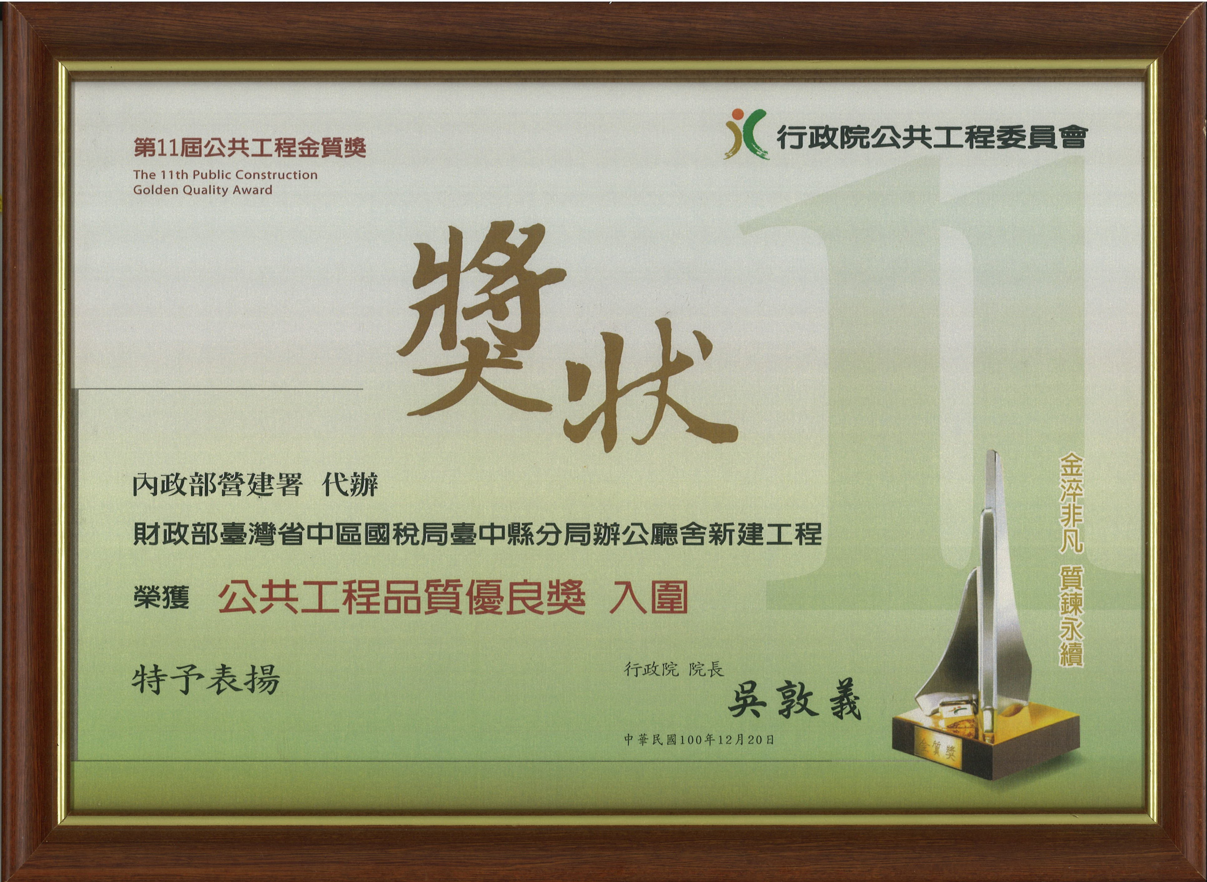 優等 臺灣彰化地方法院新建檔證大樓工程