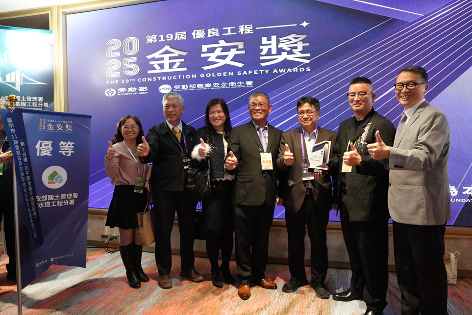 內政部參事方志雄今(26)日出席由勞動部舉辦的「第19屆優良工程金安獎」頒獎典禮。內政部表示,金安獎是國內工程領域最具指標性的安全衛生獎項,評選內容涵蓋工地安全衛生管理、風險評估、施工階段科技導入與職安系統運作等多項專業指標,內政部國土管理署能獲7座獎項絕非易事,也充分體現政府長期深耕安全管理的具體成果。